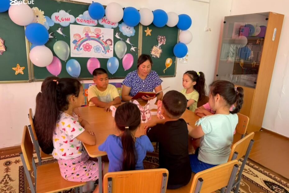 Мектеп жанындағы “Балдәурен” жазғы сауықтыру лагерінде “Балалар кiтапханасы” жобасы аясында…Маусым 10, 2025